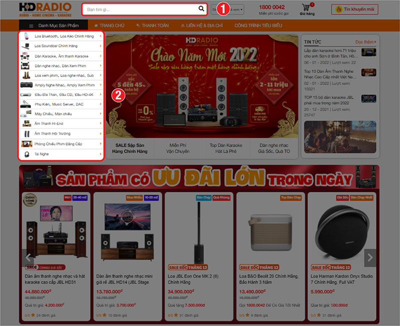 - Số 2 : Tìm sản phẩm trực tiếp thông qua các danh mục của HDRADIO