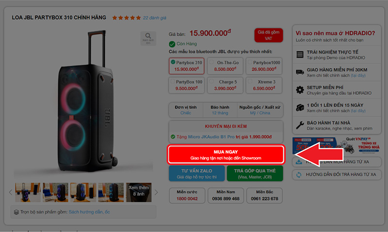 - Số 1 : Tìm sản phẩm trên ô tìm kiếm của HDRADIO (gõ tên sản phẩm sau đó nhấn tìm kiếm)