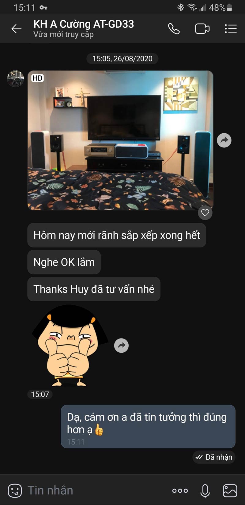 Không bao giờ làm khách hàng thất vọng, Ngày 26/8/2020, HDRadio đã chính thức lắp đặt thành công dàn xem phim 5.1 chất lượng đỉnh cao cho anh Cường tại Phú Nhuận, đây là bộ dàn âm thanh xem phim đỉnh cao với các sản phẩm chính hãng mang thương hiệu Polk AudioDENON giúp tái hiện chân thực các bộ phim bom tấn hiện nay. Hệ thống được anh Cường Vô cùng yêu thích sau khi sử dụng