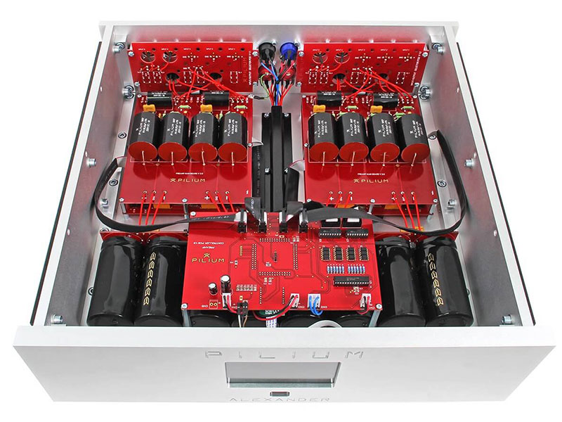 Pre amply Pilium Divine Alexander sở hữu thiết kế quad-mono, đồng nghĩa với việc mạch tiền khuếch đại, mạch điều khiển âm lượng của mỗi kênh tín hiệu sẽ nằm ở trên một bo mạch riêng giúp ngăn chặn can nhiễu tín hiệu từ các kênh ảnh hưởng đến nhau hoàn hảo.
