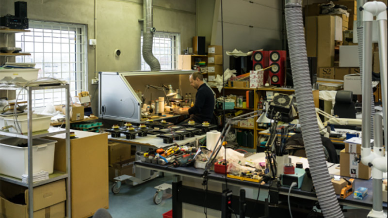 Một phần lớn của nhà máy Raidho ở Pandrup được dành để lắp ráp. Trong không gian rộng lớn, đông đúc này, các bộ phận khác nhau của các trình điều khiển của Raidho được lắp với nhau và sau đó được gắn vào các tấm mặt nhôm dày, sau đó được bắt vít vào các thùng loa đã hoàn thiện.