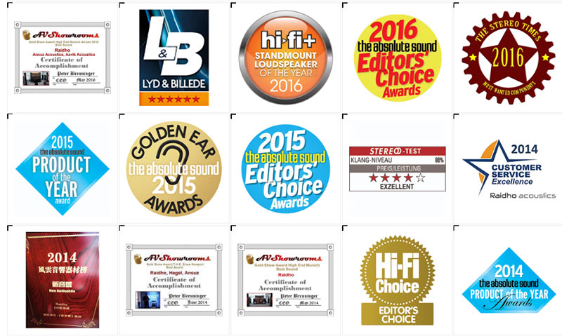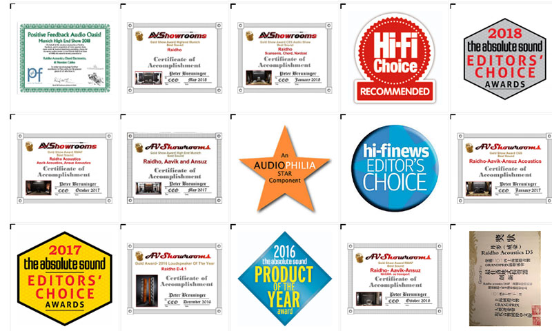 - Loa Raidho được đánh giá rất cao của giới chuyên môn với hàng loạt giải thưởng âm thanh danh giá từ những tạp chí âm thanh hàng đầu thế giới.