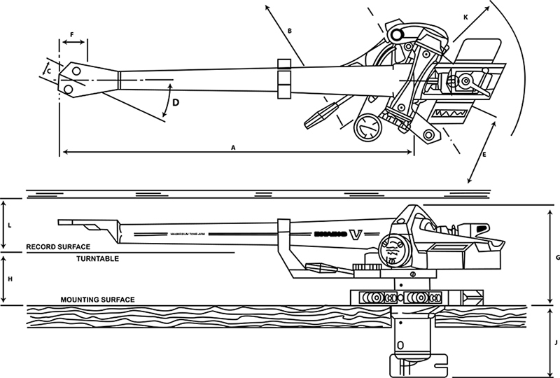 - Các đường tham chiếu trên tone-arm hỗ trợ thiết lập VTA.