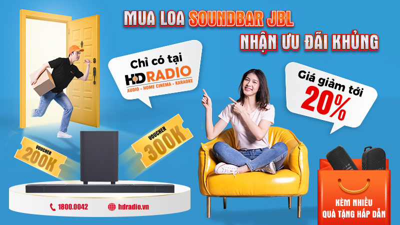Bùng nổ ưu đãi, HDRadio tung ra chương trình khuyến mại CỰC LỚN khi mua Loa soundbar JBL giảm giá lên đến 20% kèm nhiều quà tặng hấp dẫn voucher giá trị,... Có thể nói, đây như là lời tri ân đến quý khách hàng thân yêu đã luôn tin tưởng, ủng hộ HDRadio trong suốt hơn 10 năm qua về các sản phẩm đang được bày bán tại hệ thống showroom của HDRadio nói chung và các mẫu loa soundbar JBL nói riêng.