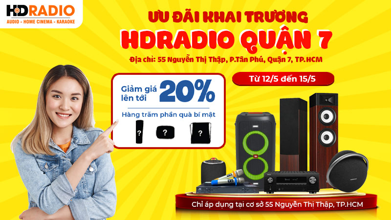 Ưu Đãi lớn nhân dịp Khai Trương chi nhánh HDRadio Quận 7 với hàng trăm phần quà có giá trị bao gồm: Quà tặng, Voucher, cũng như khuyến mãi giảm giá lên tới 20% cho hàng trăm mặt hàng khi mua trực tiếp tại địa chỉ showroom: 55 Nguyễn Thị Thập, P.Tân Phú, Quận 7, TP.Hồ Chí Minh. (ĐÃ KẾT THÚC)